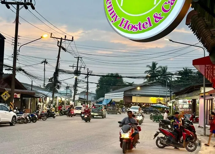 住处离潘提普食品市场仅450米,离班泰黑月派对4.4公里. Penny Hostel & Cafe 通萨拉的某些客房面朝城市.